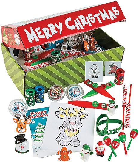 Fun Express Santa’s Toy Chest Toy Assortment (100 Pieces) Stocking Novelty Christmas Toys