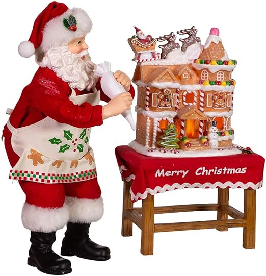 Kurt Adler 10.5-Inch Battery-Operated Fabriche Santa Decorating LED Gingerbread House Table Piece (JEL1203)