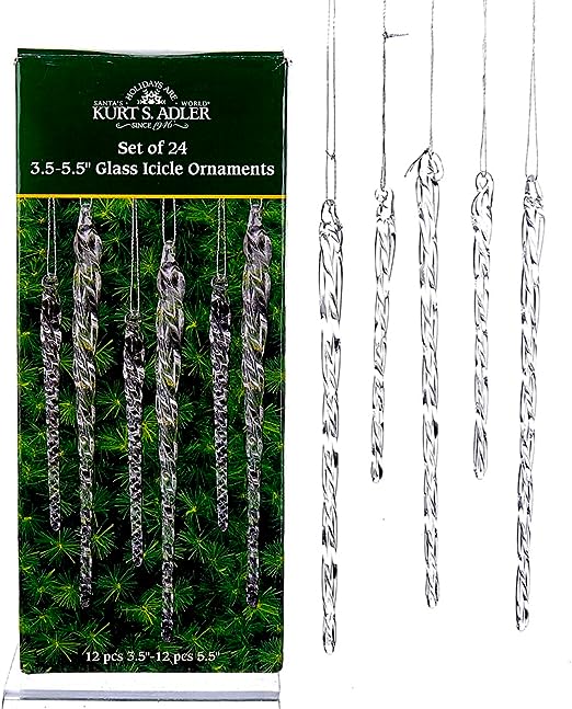 Kurt Adler 3-1/2-Inch-5-1/2-Inch Clear Glass Icicle Ornament Set of 24 Pieces, for Christmas