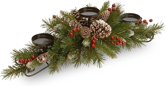 National Tree Company Artificial Christmas Centerpiece | Includes 3 Candle Holders, Red Berries, Pine Cones and Steal Base | Frosted Berry – 30 Inch
