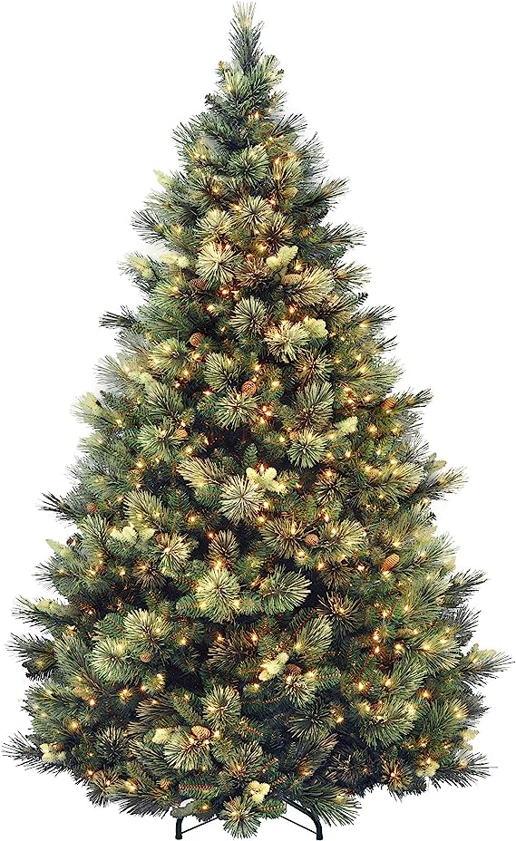 National Tree Company Carolina Pine 7.5 Foot Artificial Holiday Prelit Christmas Tree w/750 Clear Lights, Pinecones, 1399 Branch Tips and Metal Stand